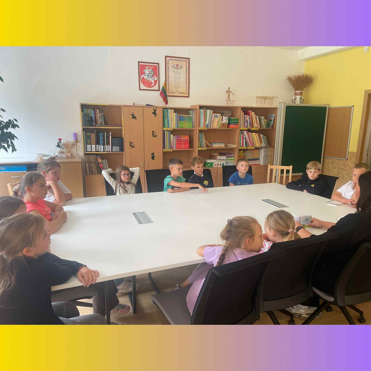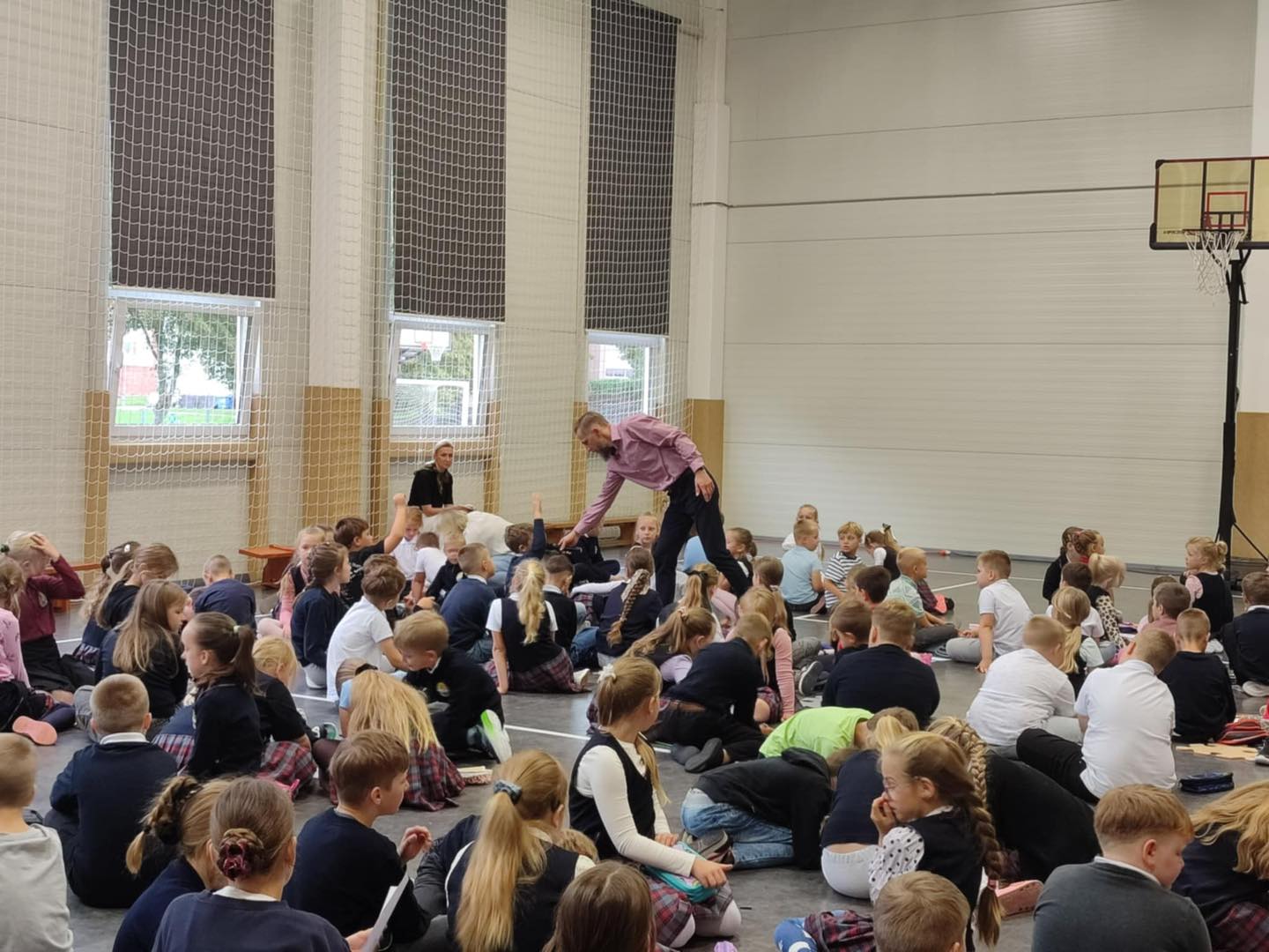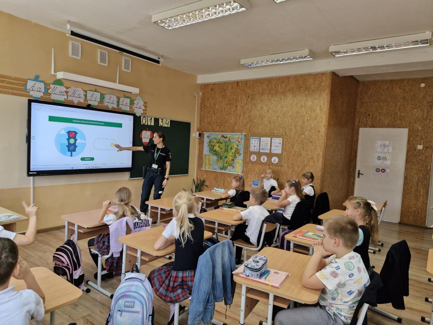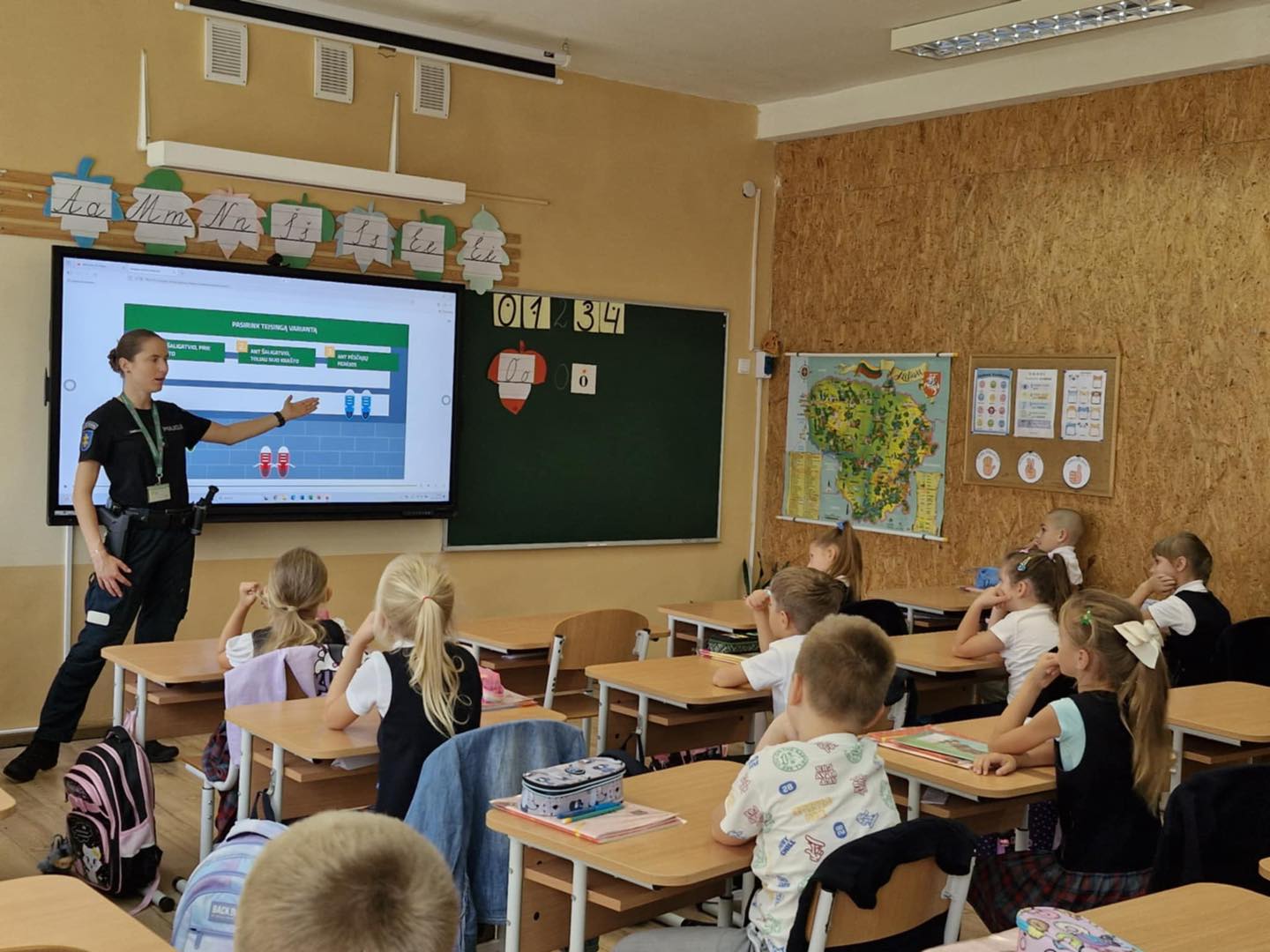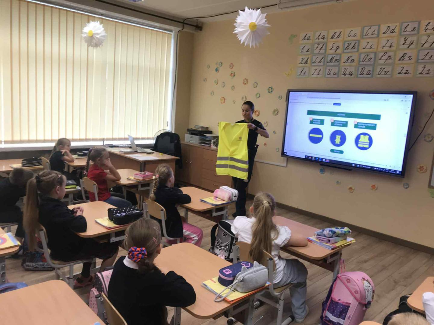 1a ir 1b klasių mokinius aplankė Marijampolės vyr. komisariato bendruomenės pareigūnė Dimšaitė. Pamokėlės metu mokiniai įsisavino saugaus eismo taisykles. Pirmiausia prisiminė šviesoforo spalvų reikšmes, mokėsi pereiti kelią pėsčiųjų perėjoje, sužinojo, kaip taisyklingai segėti atšvaitus, užsidėti liemenę, saugiai eiti užmiesčio keliu, keliauti autobusu ar automobiliu.O svarbiausia naujiena buvo ta, jog negali vieni važiuoti el. paspirtuku iki 16 metų ir privalo dėvėti šalmusiki 18 metų.