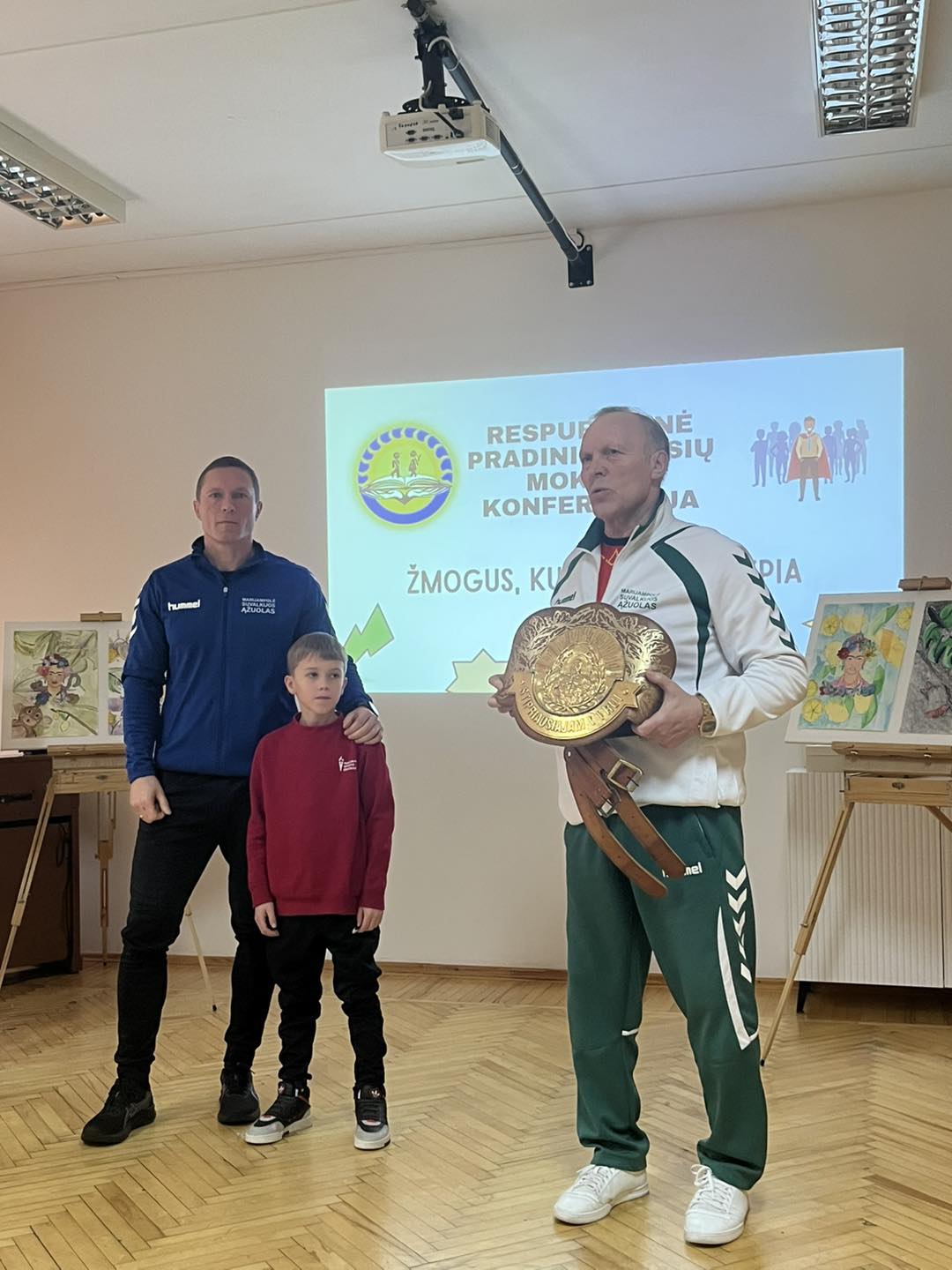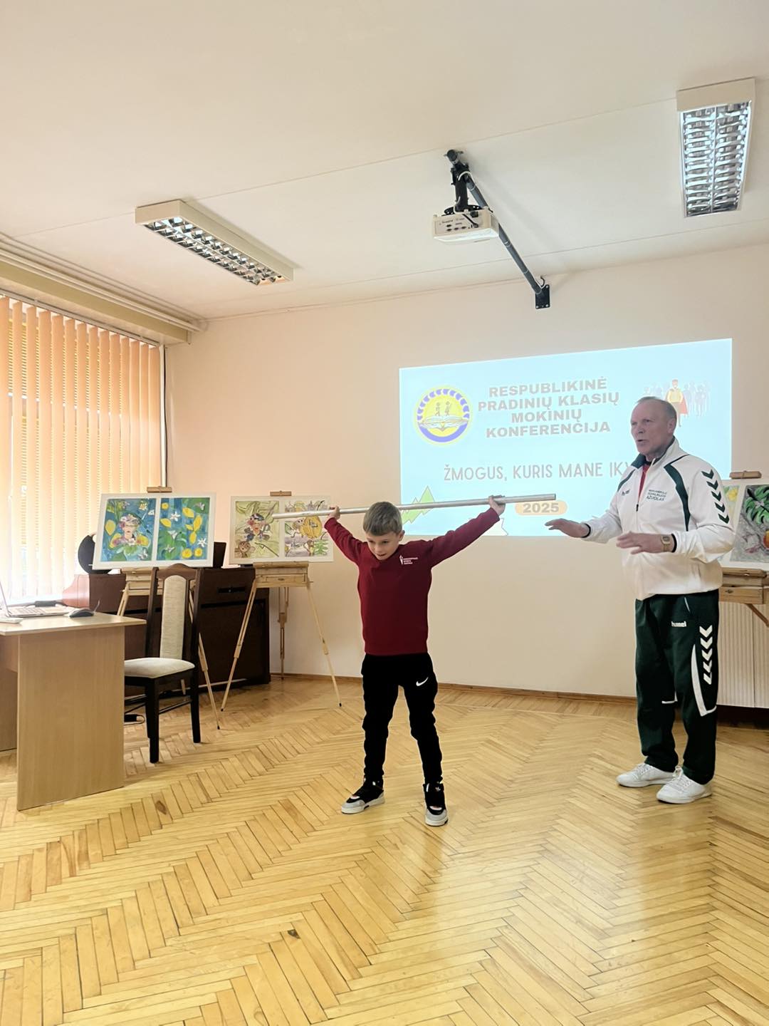 Įgyvendinant Marijampolės savivaldybės švietimo rėmimo programos projektą „Tūkstantmečio mokinys“, 2025-11-19 Marijampolės „Saulės" pradinėje mokykloje, antrus metus iš eilės surengta Respublikinė pradinių klasių mokinių konferencija „Žmogus, kuris mane įkvepia“. Renginys subūrė 23 mokinius iš Marijampolės, Alytaus ir Vilkaviškio savivaldybių pradinių klasių mokinius ir jų mokytojus. Konferencijos atidaryme dalyvavo Marijampolės sporto centro sunkiosios atletikos treneris Alvydas Kirkliauskas, jo pėdomis einantys sūnus Vytautas ir anūkas Adomas. Jie pasidalijo savo įkvepiančia patirtimi apie sportą, atkaklumą, šeimos tradicijų tąsą ir nuoseklų darbą, kuris padeda siekti rezultatų. Jų istorija tapo stipriu renginio akcentu ir paskatino dalyvius susimąstyti apie tikrąsias įkvėpimo šaltinių reikšmes. Jaunieji konferencijos pranešėjai pristatė žmones, kurie juos įkvepia labiausiai – nuo artimiausių šeimos narių iki visuomenėje ryškių asmenybių. Vaikai drąsiai dalijosi savo mintimis, pasakojo apie kasdienes pastangas, palaikymą ir pavyzdį, kurį mato aplinkoje. Antrus metus organizuojama konferencija įrodė, kad pradinukams tokie renginiai yra prasmingi ir reikalingi. Jie ugdo savarankiškumą, viešojo kalbėjimo įgūdžius, padeda mokytis pasitikėti savimi ir pastebėti gerą pavyzdį šalia. Projektas „Tūkstantmečio mokinys“ ir toliau stiprina mokinių motyvaciją, skatina kūrybiškumą ir vertybinių nuostatų ugdymą. Konferencija – vienas aiškiausių pavyzdžių, kaip vaikai, kalbėdami apie savo įkvėpimo šaltinius, patys auga ir įkvepia kitus.