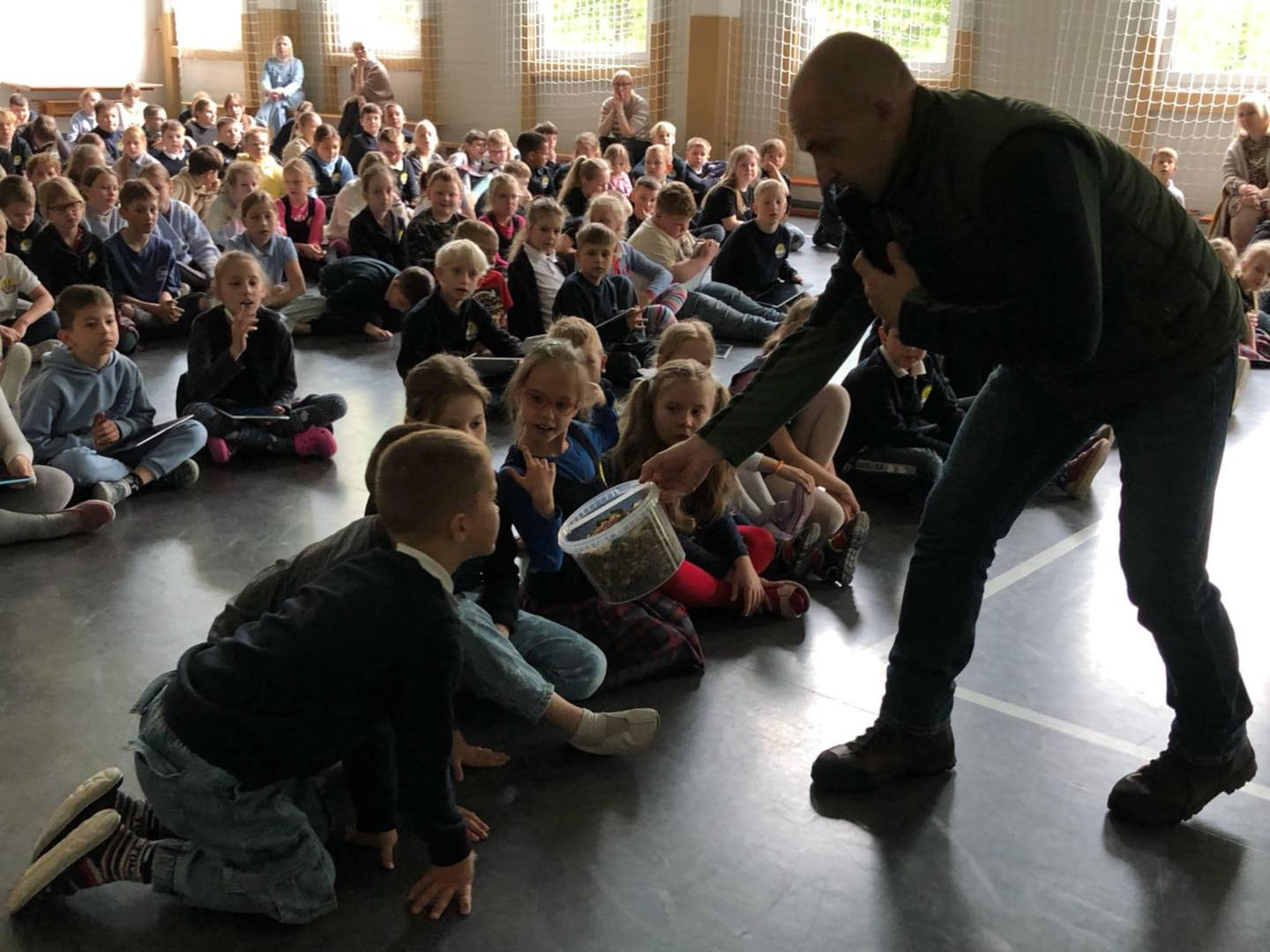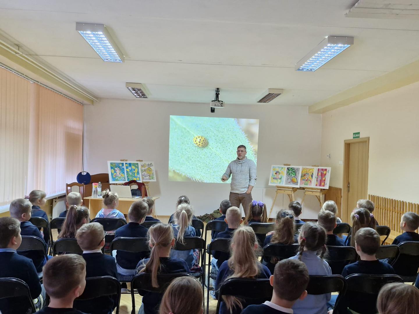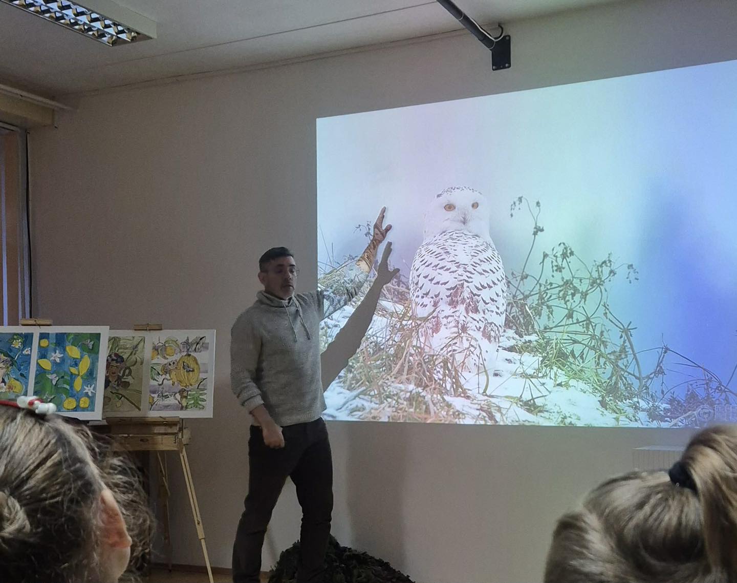 2025-11-25 tęsiant ilgalaikį mokykloje įgyvendinamą Marijampolės savivaldybės Aplinkosauginio švietimo, aplinkosauginį projektą ,,Žmogaus ir gamtos ryšys", į svečius pakvietėme charizmatiškąjį gamtos žinovą, fotografą, laidų apie gamtą vedėją Marių Čepulį. Svečias pristatė įspūdingas gyvūnų nuotraukas, papasakojo, kiek valios ir kantrybės reikėjo norint ,,pagauti" tinkamą gyvūnų kadrą. Ar šiandien galime sutikti dinozaurą, vampyrą? Kam gyvatei reikalingas liežuvis? Kas gamtoje protingiausias, ėdriausias, stipriausias? Į šiuos ir į daugelį kitų klausimų atsakė M. Čepulis.
