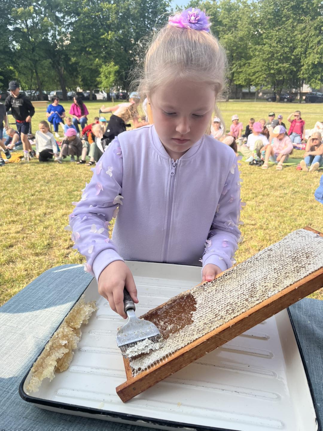 2025-06-03 tęsiant ilgalaikį mokykloje įgyvendinamą Marijampolės savivaldybės Apilkosauginio švietimo, aplinkosauginį projektą ,,Žmogaus ir gamtos ryšys", į svečius pakvietėme edukologus Kęstutį ir Ernestą, įkūrusius bitininkystės ūkį ,,Saldūs Ūsai". Jie mus supažindino su paslaptingu bičių pasauliu.
